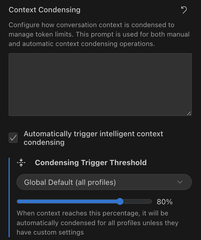 - Default Activation: Intelligent context condensing is now enabled out of the box for all users